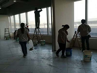 商務樓裝修后保潔:清除裝修殘留物,如涂料、油漆、石膏等;清潔玻璃、瓷磚、金屬等[查看更多]清洗展示